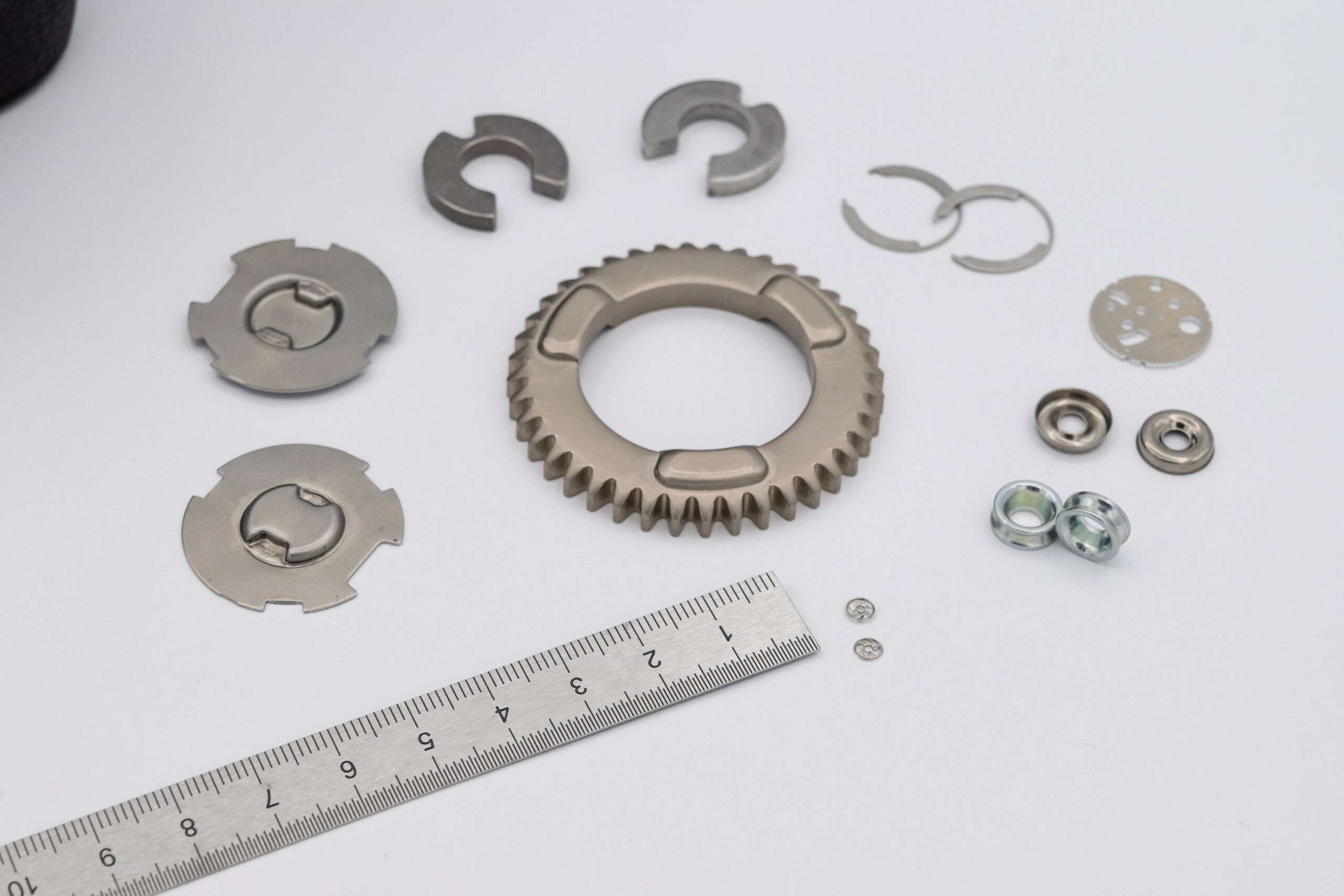 Variety of Components: connectors, washers, sensor components, precision shields, brackets, laminations, fuel injectors/nozzle discs, counterbalance and mechanism parts, compressor components, and flat springs for motion control.