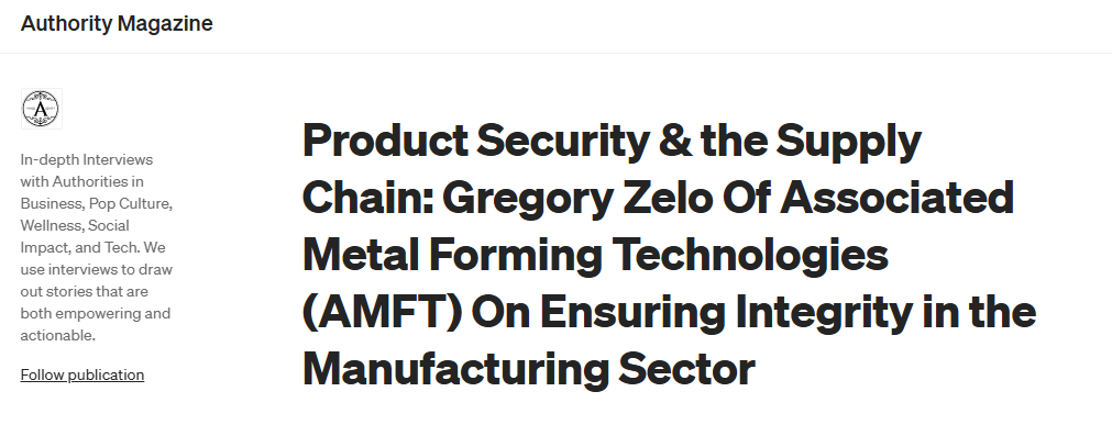 We are proud to share that Gregory Zelo, who leads the company’s technology and data strategy, was recently featured in Authority Magazine discussing why product security must be embedded throughout today’s complex supply chains. In the interview, Gregory explains how rising cyber and physical threats are reshaping expectations for manufacturers and their partners, and why security is now a core requirement, not a “nice to have,” for customers in every sector. He highlights AMFT’s commitment to safeguarding data, protecting customer IP, and working closely with suppliers to build resilient, trusted supply chains that can withstand evolving risks. This recognition underscores AMFT’s role as a forward-looking manufacturing partner focused on both precision metalforming and the security, reliability, and continuity our customers depend on every day. Read the full article now: https://medium.com/authority-magazine/product-security-the-supply-chain-gregory-zelo-of-associated-metal-forming-technologies-amft-597e9ceebb0d
